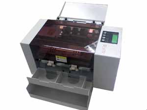 Starting with A4 size or letter-size pages that have been printed with 10 cards on page, the AUTOMATIC CARDMATE can cut the pages into business cards, with unbelievable ease, speed and accuracy