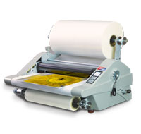 Features include 8-bit microprocessor control with pre-set functions and LCD readout, pressure control, unique film tracking system for easy film alignment, cross cutter and turbo power cooling system, side lays on feed table, opening heat shoes for easy roller cleaning, purpose-build stand and larger roll film capacity.